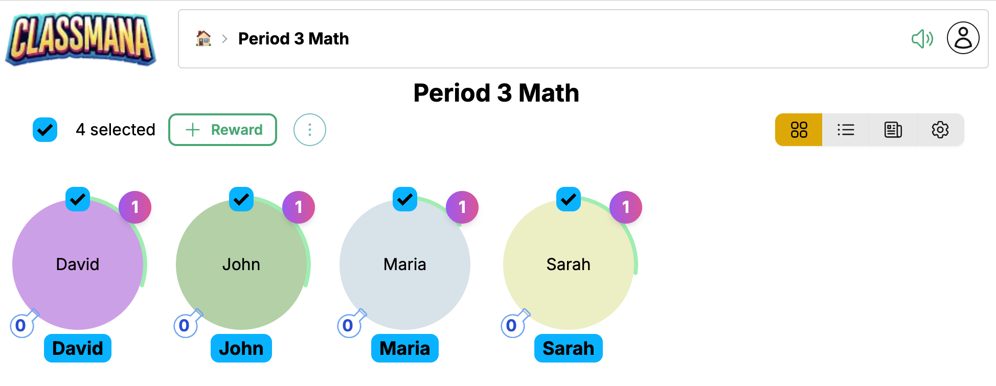 - Spustelėkite Apdovanoti, kad pritaikytumėte visiems pasirinktiems mokiniams