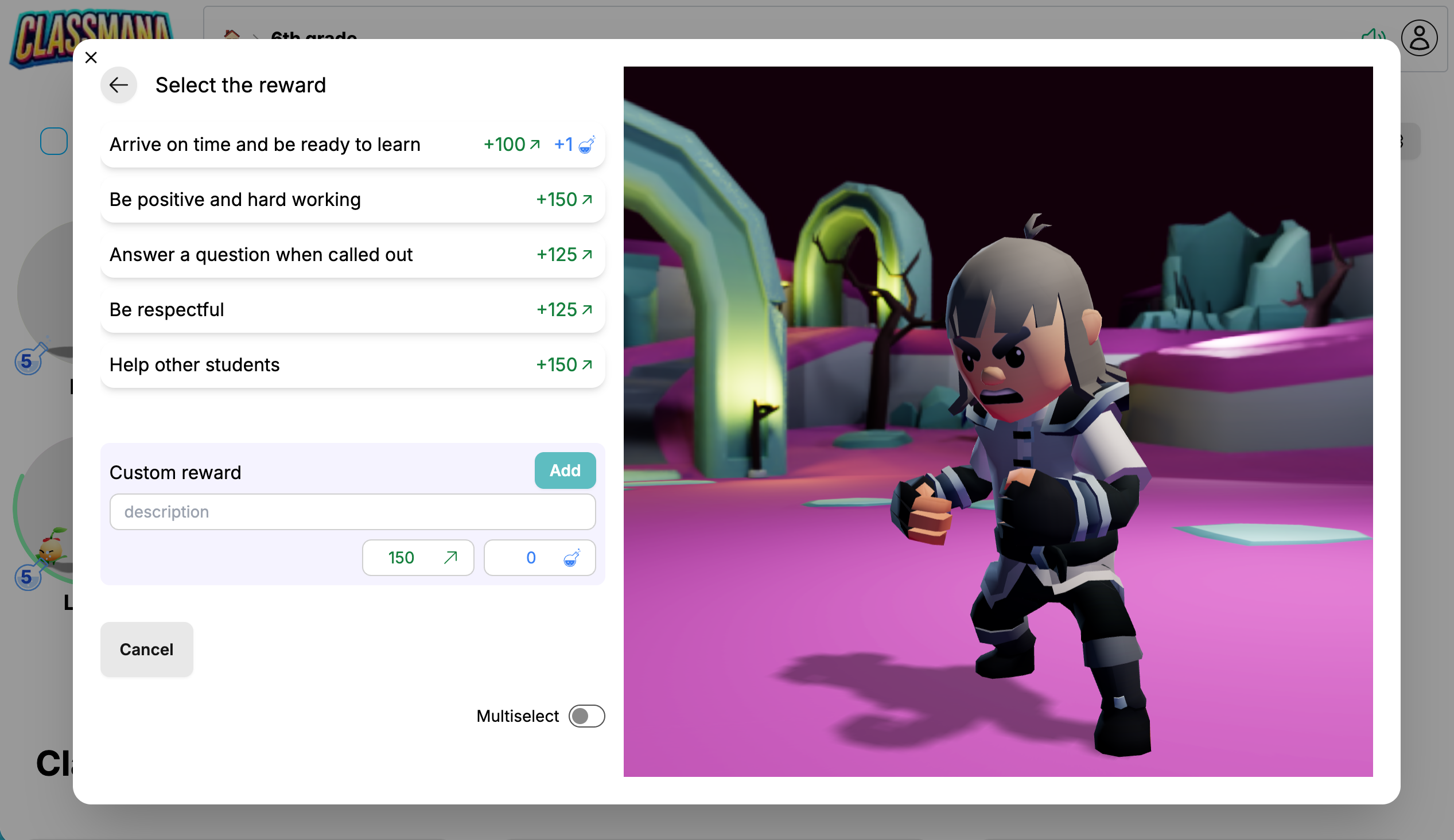 Mokinių apdovanojimas yra ClassMana žaidybinimo sistemos pagrindas. Kai apdovanojate mokinius, jie gauna patirties taškus, kurie padeda jiems kilti lygiais ir gauti manos galių naudojimui. Šis vadovas supažindins jus su skirtingais būdais efektyviai duoti apdovanojimus.